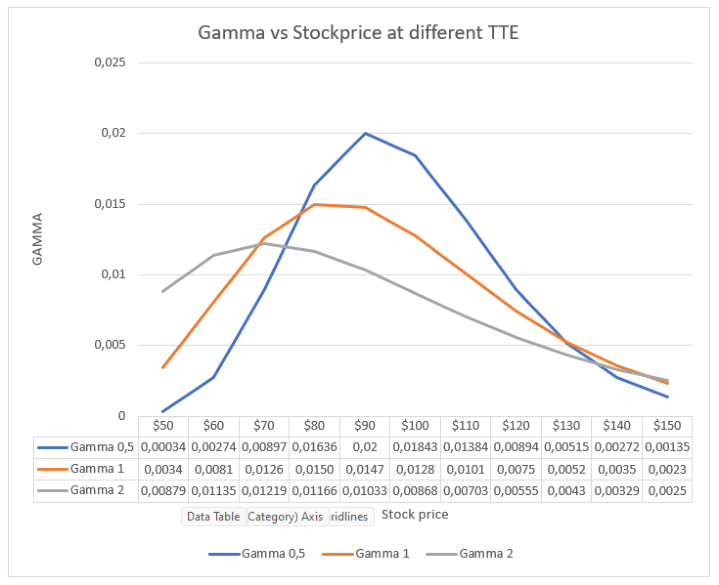 Een optie met een kortere looptijd heeft een hogere gamma dan een optie met een
