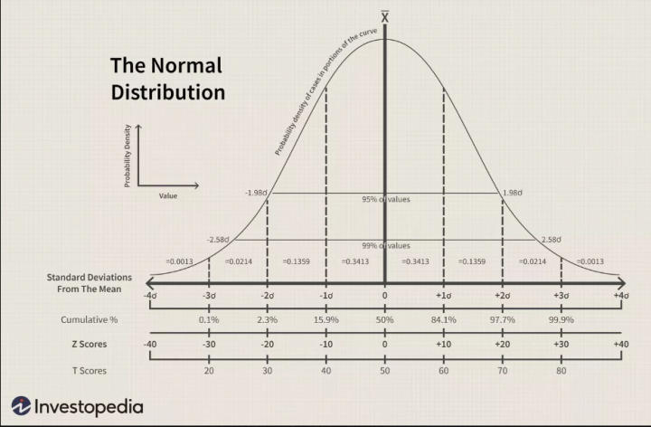 Op investopedia.com komen we de volgende afbeelding van de Bell Curve tegen
