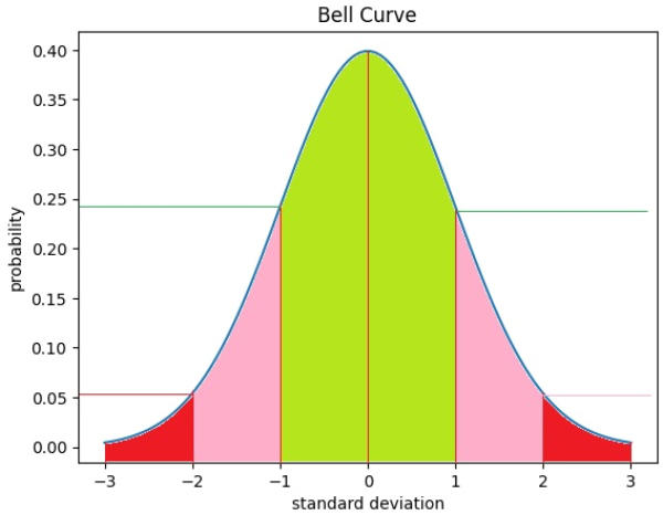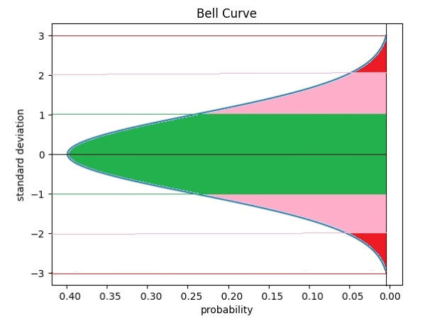 Ik heb even door Google Colab een Bell curve laten tekenen, dat is wat duidelijker, en is opgebouwd uit