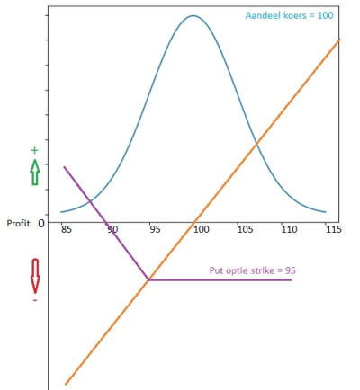 Te zien is dat de put optie geld gaat opleveren wanneer de koers onder de waarde 100 daalt.