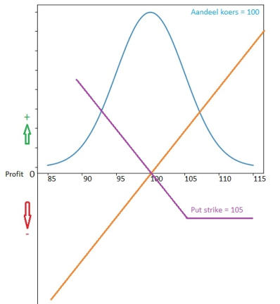 Laten we dat eens bekijken voor een Put optie met strike = 105 en premie = 5.